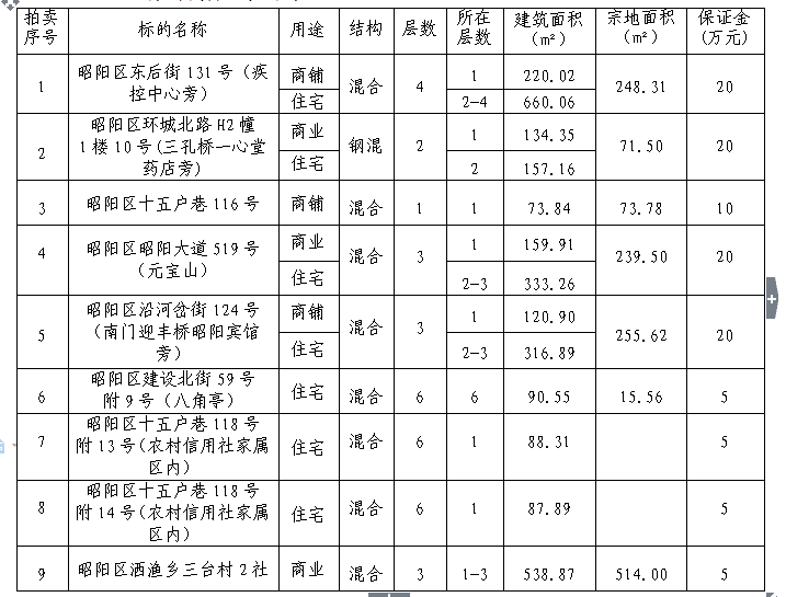 受云南昭通昭陽農(nóng)村商業(yè)銀行股份有限公司委托,公開拍賣昭陽農(nóng)村商業(yè)銀行閑置資產(chǎn)9宗。相關事項如下: