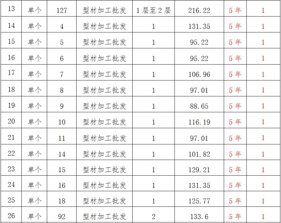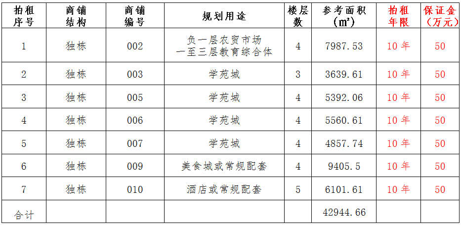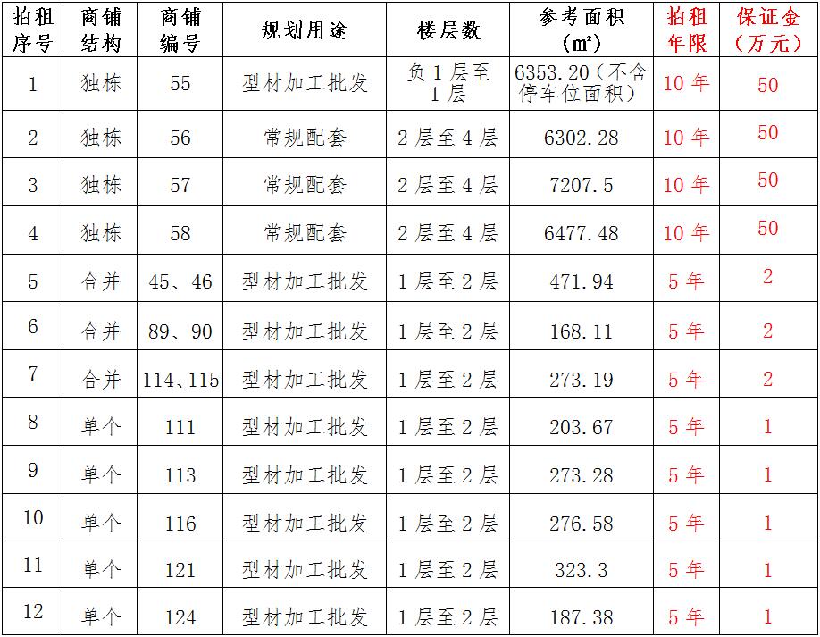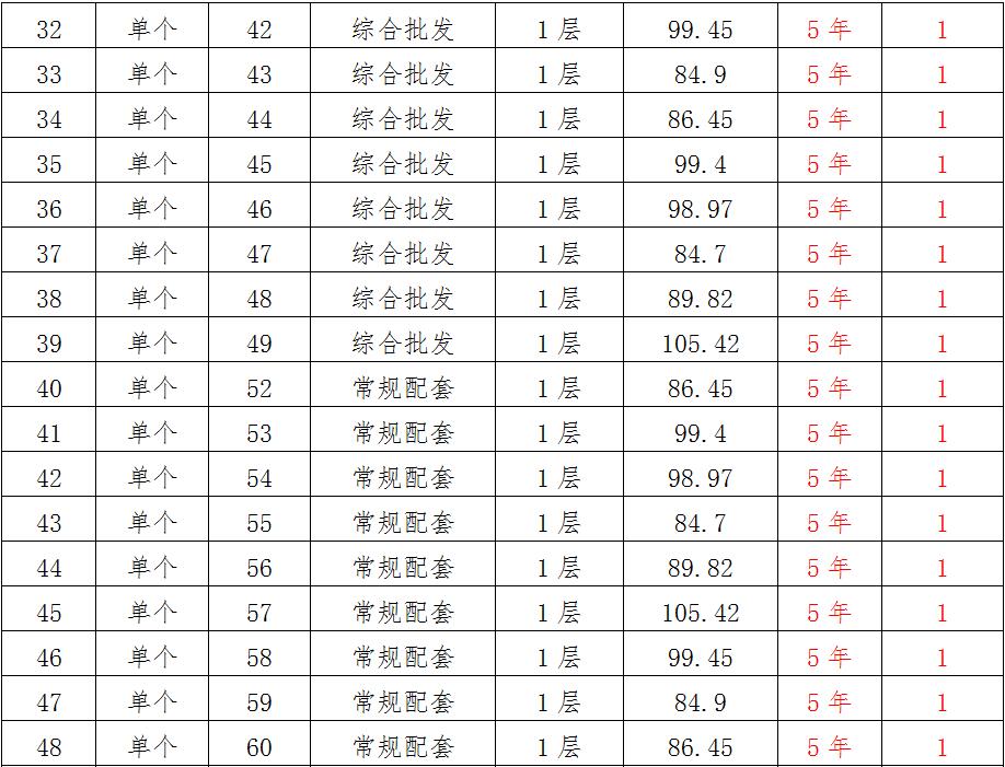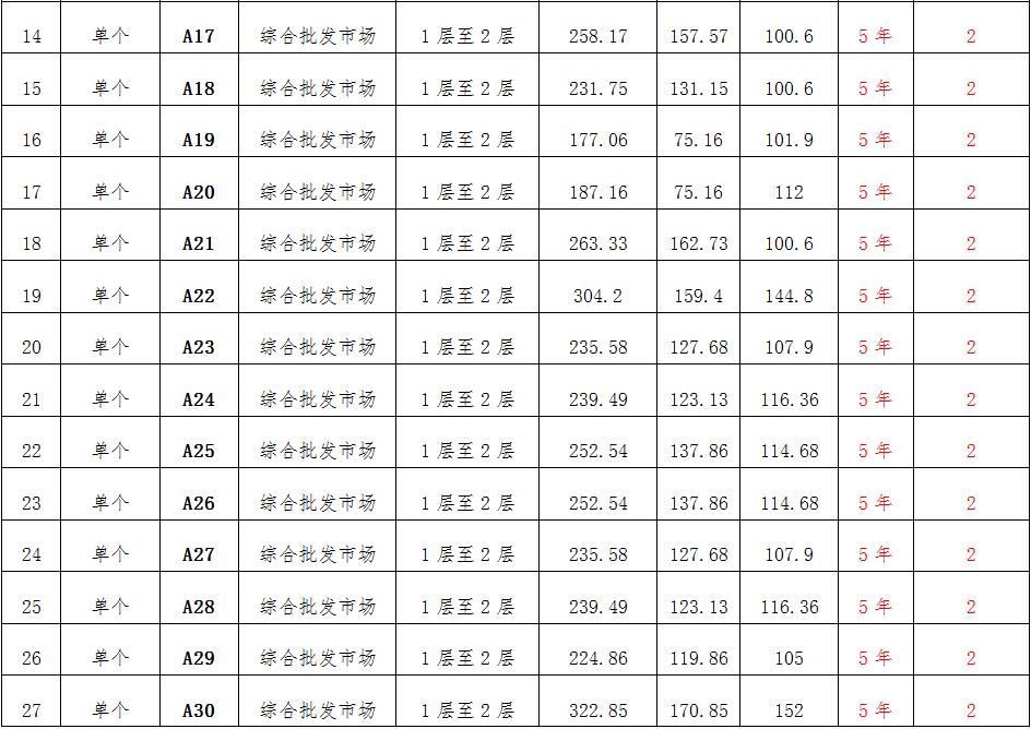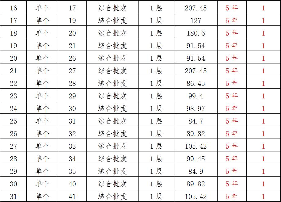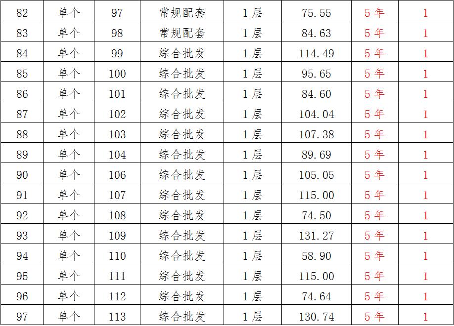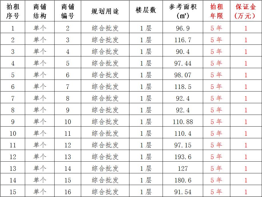 (一)拍租位于鎮(zhèn)雄縣南臺街道呢嚕坪安置點7棟獨立商鋪使用權(quán)。以棟為單位拍租。詳見下表:具體面積以現(xiàn)狀實測為準(zhǔn)。