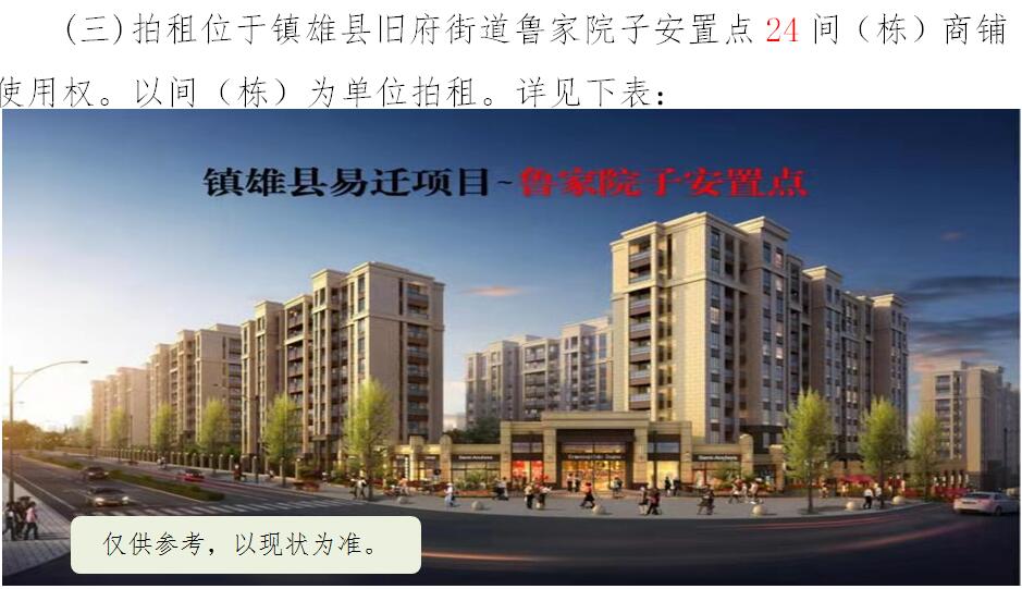 鎮(zhèn)雄縣易地扶貧搬遷工程6個安置點商鋪拍租公告