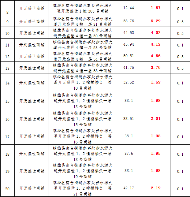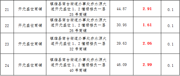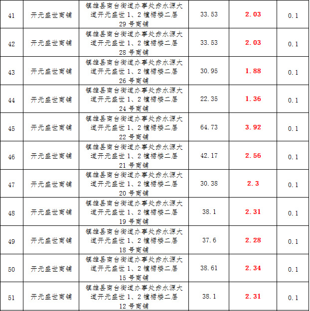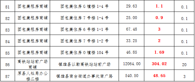 (三)拍租鎮(zhèn)雄縣城市運營管理有限公司國有門面3年期使用權(quán),詳見下表: