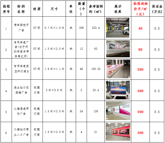 (六)拍租鎮(zhèn)雄縣開元商業(yè)物業(yè)服務(wù)有限公司以勒高鐵站站前廣場各類廣告位使用權(quán),廣告位分布、類型、規(guī)格及展示效果如下: